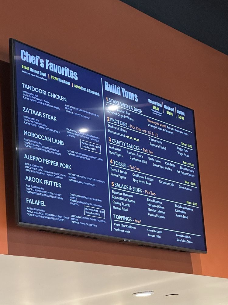 All of your delicious choices stuffed inside our fresh baked Samoon bread!Your choice of:StarchProteinSauceTorshi (pickled vegetables)Salad/SideTopping